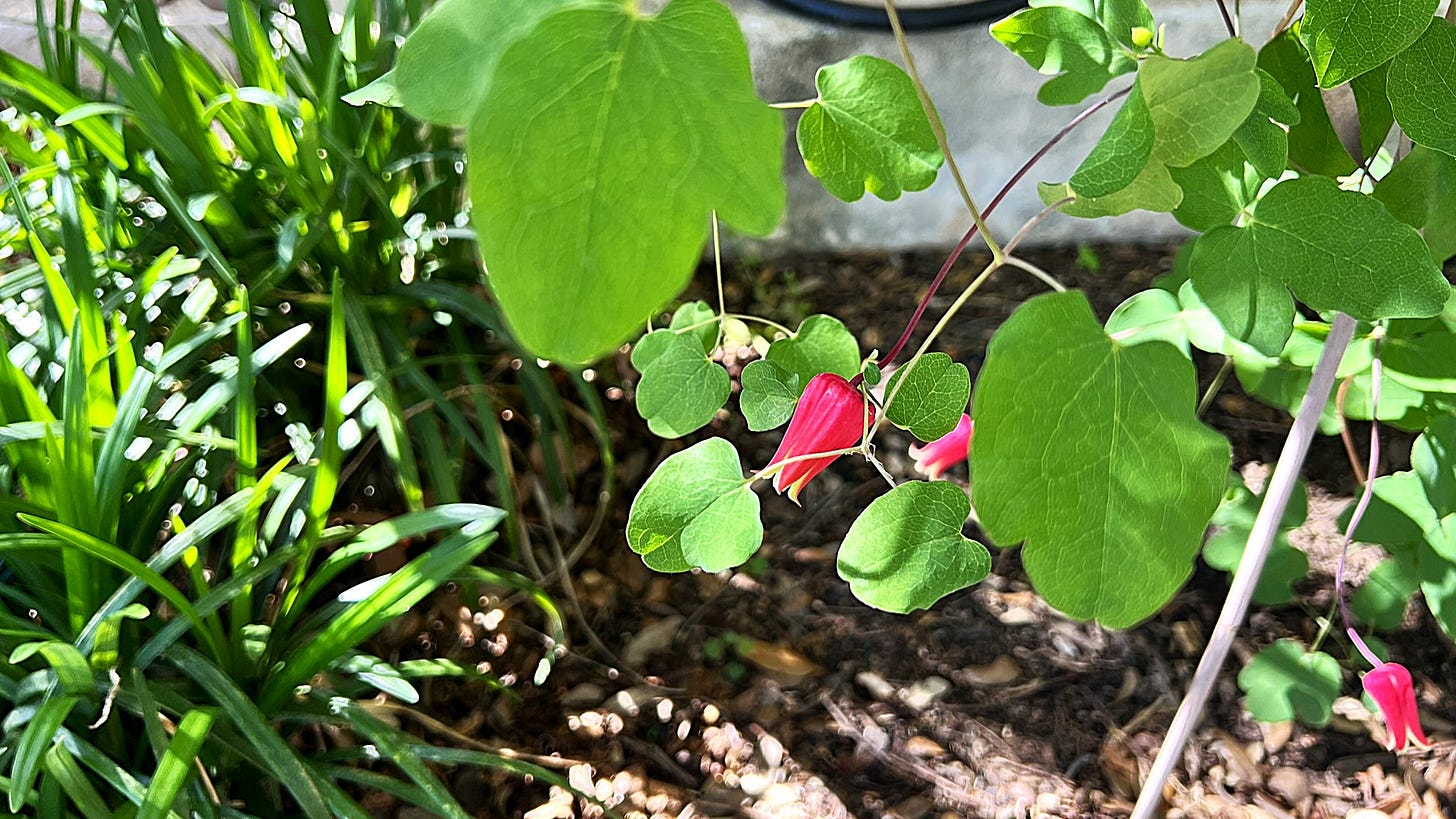 I got back to nature yesterday in my current yard. A while back, a friend gifted me a Scarlet Leatherflower, a delicate, native vine that he grew from seed. It finally bloomed this year and I’m cutting back Crape Myrtles to give it a bit more sun and encourage it. I also dug up some of my scarlet sage from beneath the big oaks and transplanted them into the new bed I started on the north fence beneath a Chinquapin Oak that I felt could use the company at its roots to help it thrive.